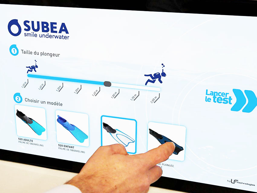 Il banco di durata “SUBEA” sviluppato per Decathlon è stato progettato per testare l’efficienza e l’accelerazione delle pinne da nuoto. Si tratta di un banco di prova e di dimostrazione in negozio, che unisce qualità e design.