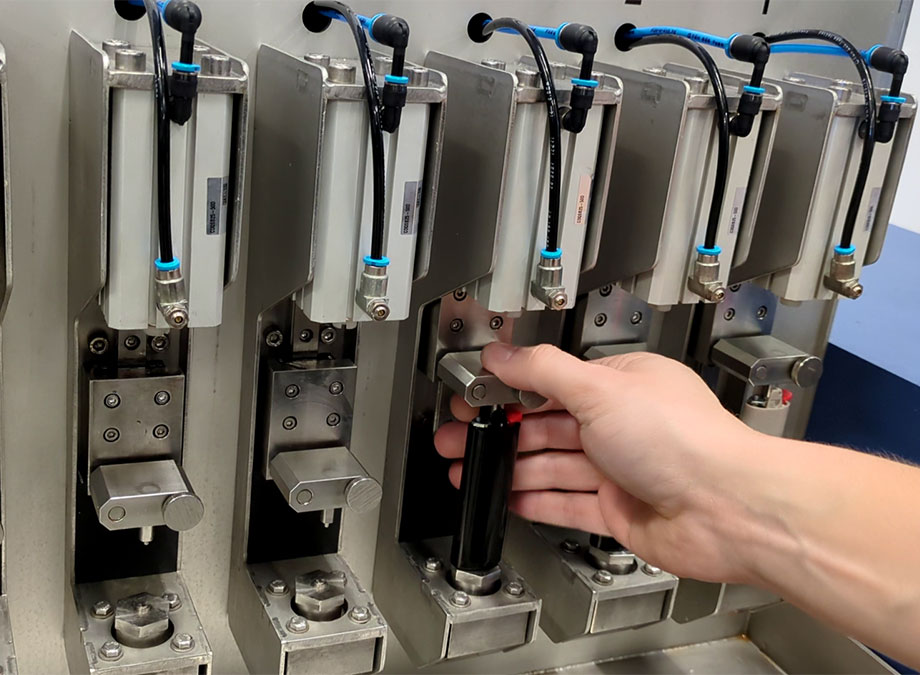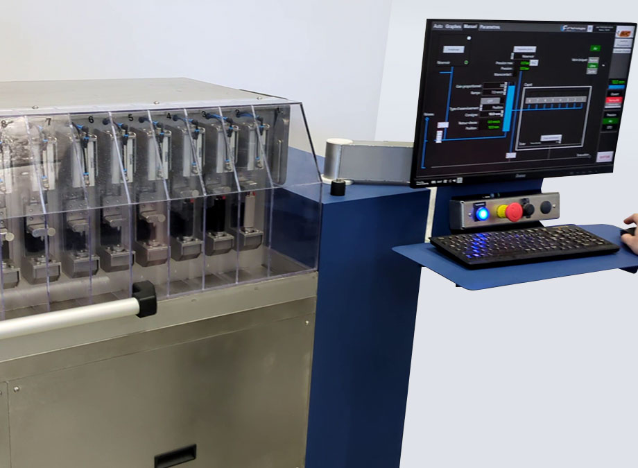 Questo banco di prova automatizzato consente di testare la resistenza e la tenuta di componenti pressurizzati (accendini, cartucce) con una precisione di 0,5 bar.